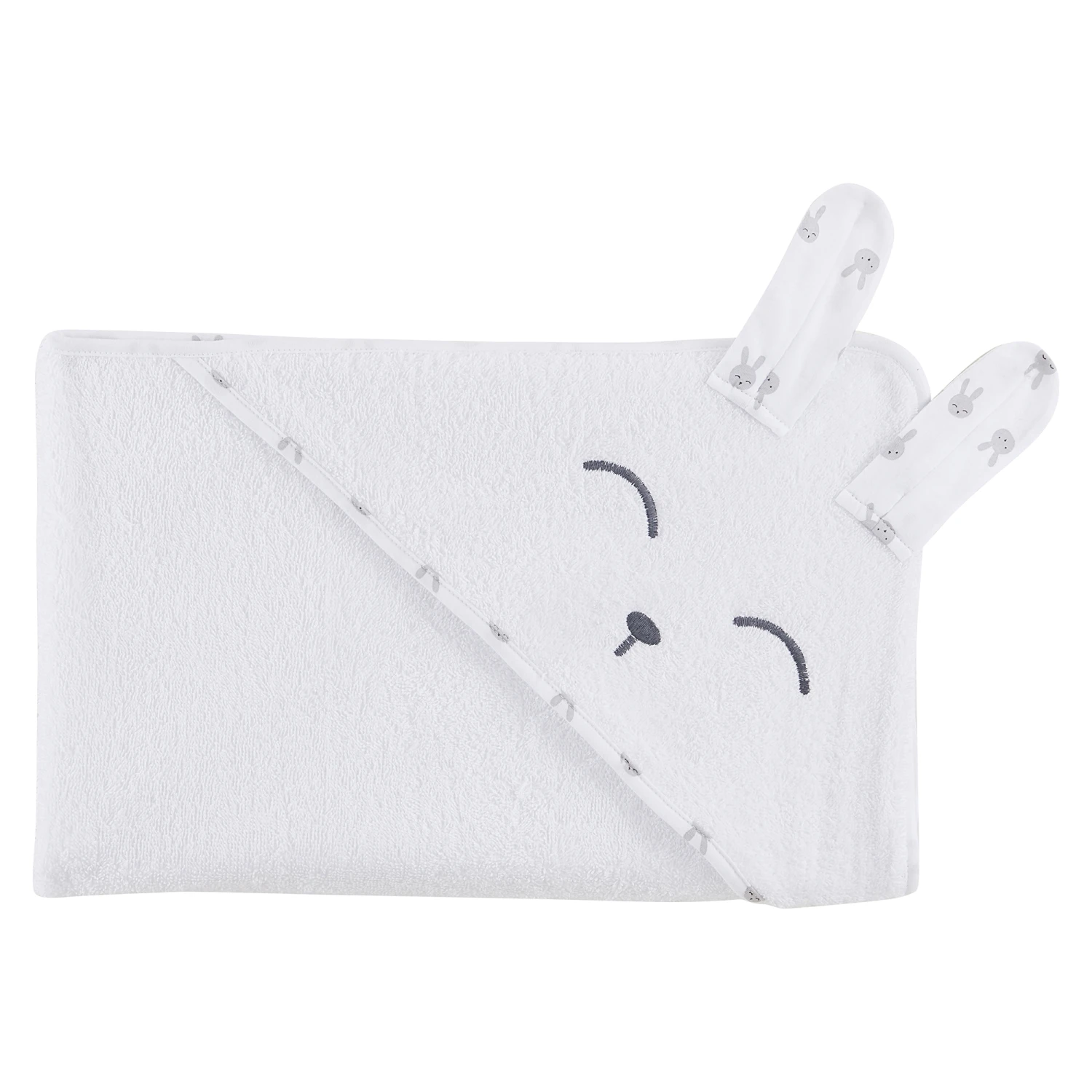 Cape de bain Lapin Câlin avec tête de lapin toute mignonne. Idéale à leur du bain pour garder Bébé bien au chaud et le sécher rapidement.