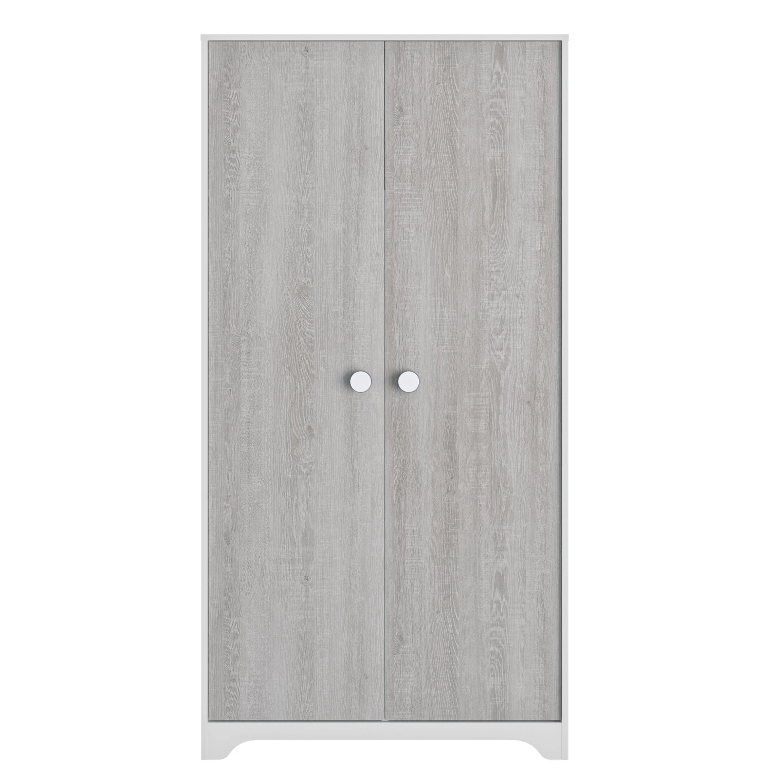 Armoire 2 portes de la chambre Marius pour un univers moderne souligné par un décor chêne gris cérusé et de délicats détails blancs.