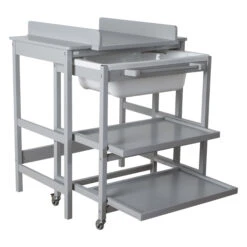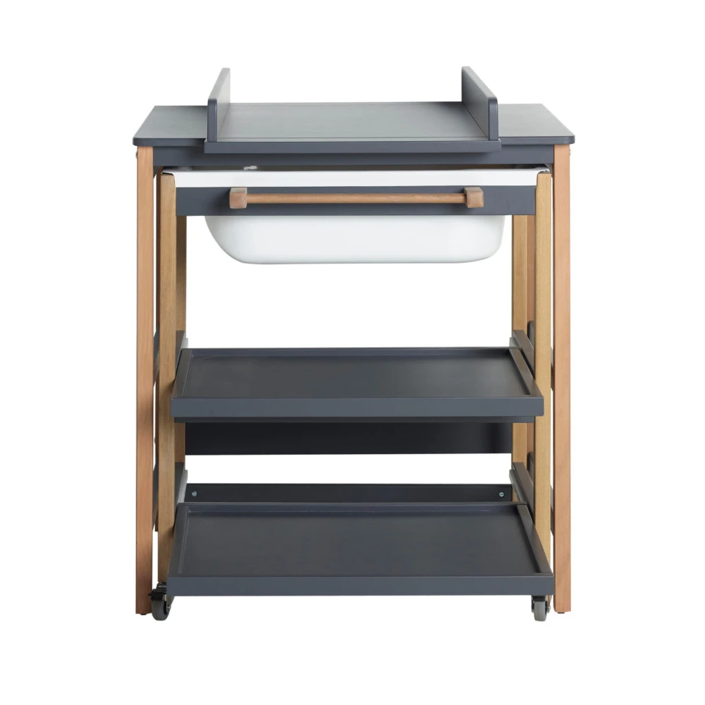 Très pratique, en un seul meuble la table à langer, la baignoire et des rangements.