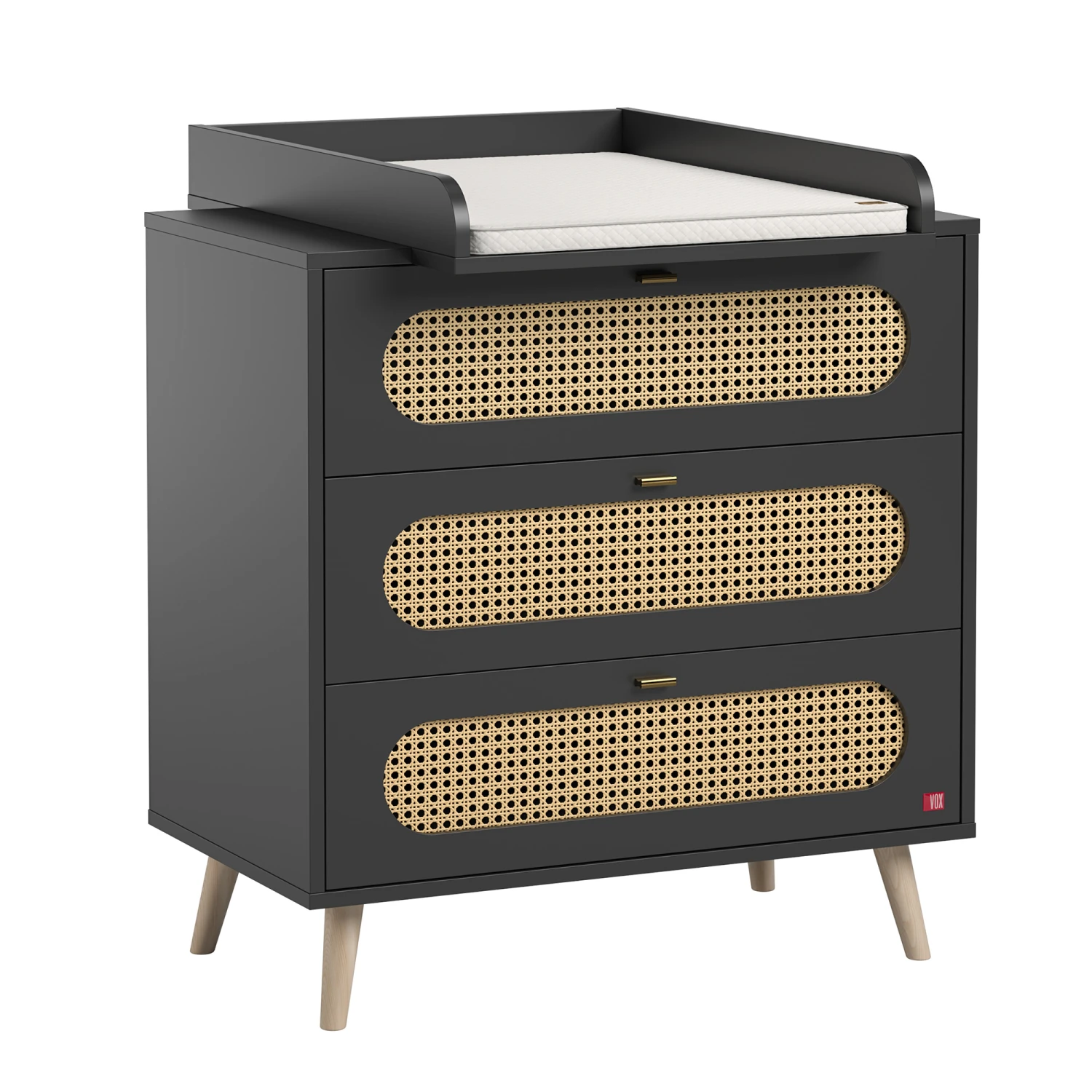 Ce plan à langer s’adapte de façon parfaitement sécure sur les commodes Canne. Existe en coloris Blanc et Noir.