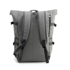 Sa forme en roll-top et ses tissus très résistants gris chiné lui confèrent un look mixte et intemporel.