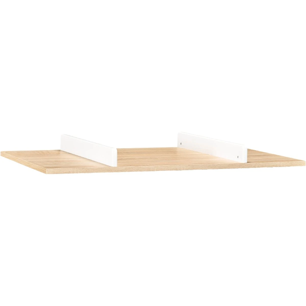 Composition : Dessus en panneaux de particules mélaminés décor Sonoma Oak. 2 joues en panneaux de fibres de moyenne densité (MDF) laquées blanc. Surface utile L=55,5cm P=76cm.